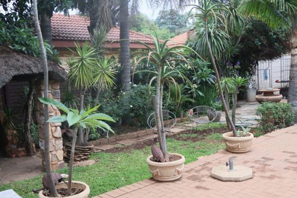 Outdoors, enjoy the expansive garden a true haven for garden lovers with established greenery, a sparkling swimming pool, and a thatched lapa, ideal for relaxed entertainment.