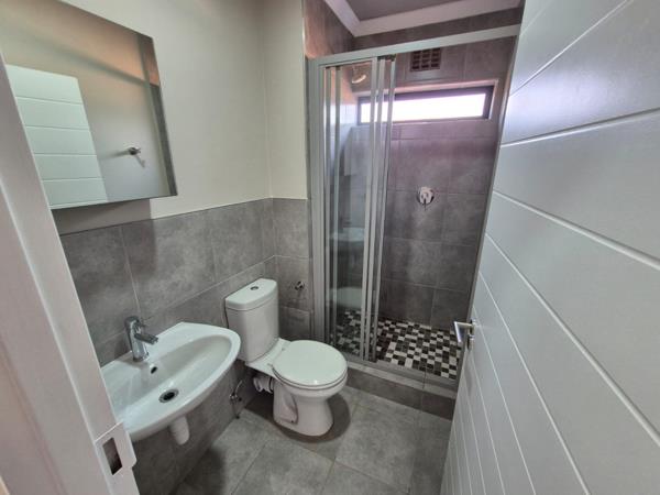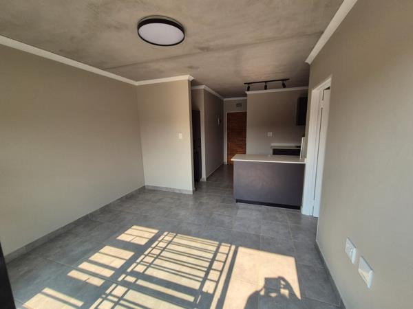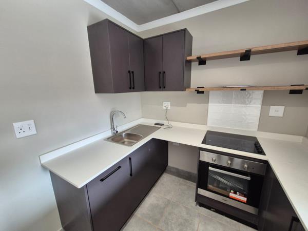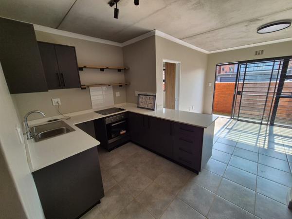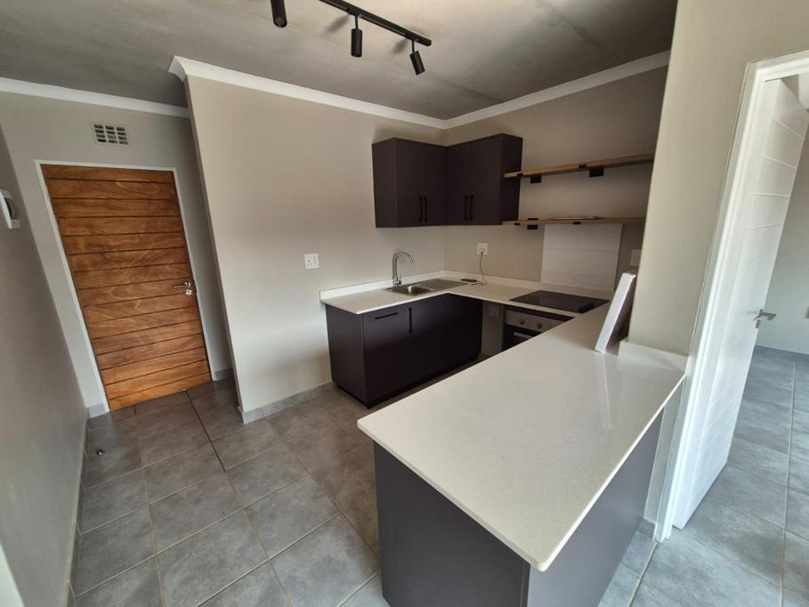 The open-plan kitchen is finished with clean lines and high-end touches, flowing effortlessly into the living area. Sliding doors open up to the communal outdoor space, ideal for relaxing or catching fresh air just outside your door.