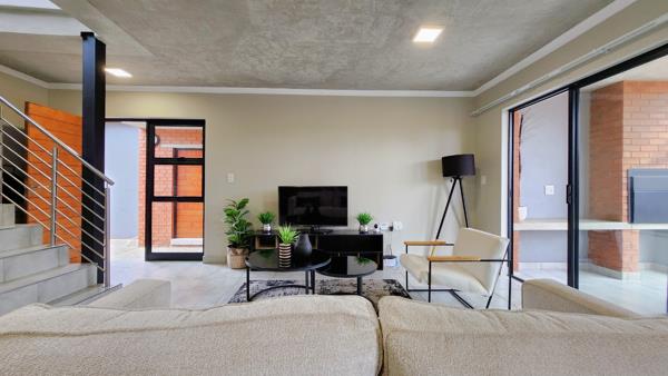 This beautiful 3-bedroom, 2-bathroom apartment offers a stylish open-plan layout with a modern kitchen featuring an electric oven and hob, flowing into a spacious living area that opens onto a covered patio with a built-in braai and a small private garden perfect for relaxed weekends or entertaining.