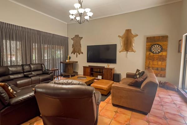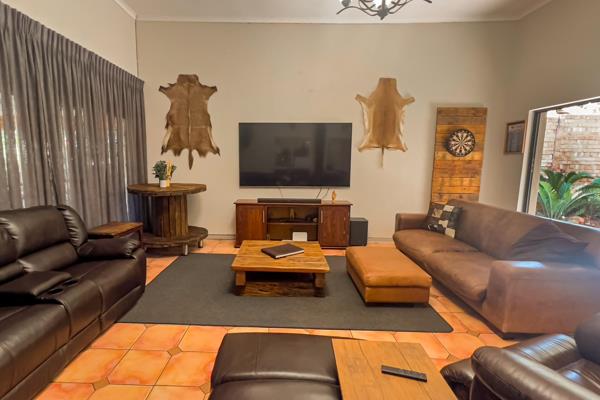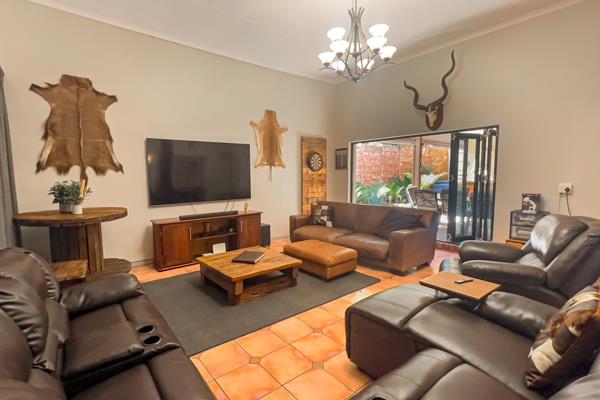 Well-appointed home providing a warm and inviting living space. The TV room, complete with a cozy fireplace, flows seamlessly into the adjacent entertainment area, which includes a built-in braai. The airconditioned dining room adds to the charm, creating a perfect space for gatherings. A lovely kitchen boasts an induction stove, ensuring effortless cooking experiences. A private study provides a quiet retreat for work or relaxation and is air-conditioned for added comfort.