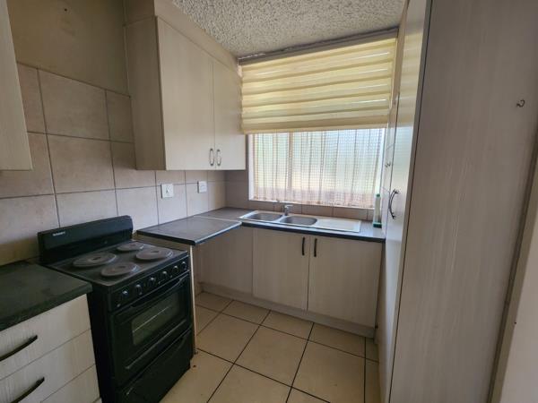 This apartment offers 3 bedrooms and 1 bathroom and separate toilet that is fully tiled. Family room leading out to Balcony. Kitchen with built-in cupboards for extra storage. 1 Garage and extra parking. Communal swimming pool for hot summer days.