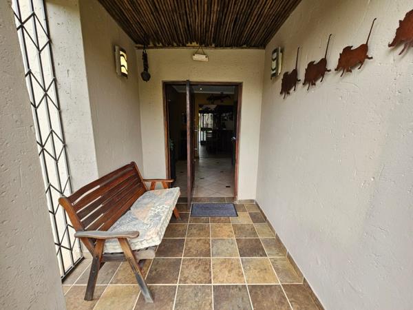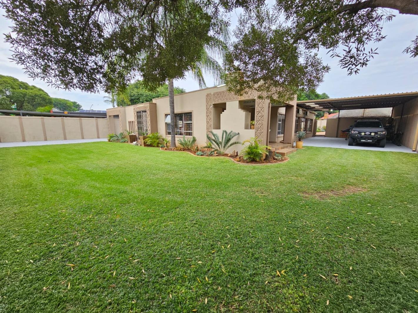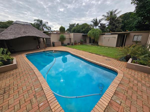 The outdoor area offers a serene haven, with a beautifully maintained garden, a lapa, and a swimming pool perfect for relaxation or entertaining. The property provides ample secure parking, both covered and open. Additional features include a garage converted into a spacious room, domestic quarters with a private bathroom, a 36-meter deep borehole, and enhanced security with an electric gate and perimeter electric fencing.
