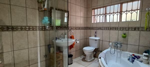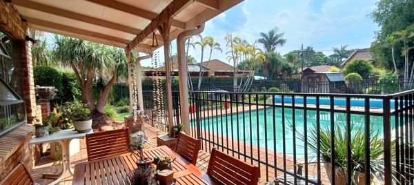 This Beautiful Home offers 3 Bedrooms with built-in cupboards, 2 bathrooms that are fully tiled. 1 Study or use for 4th bedroom. Modern Kitchen with built-in cupboards for extra storage and granite countertops, breakfast nook perfect for family meals. Open plan living area that leads out to well maintained garden and patio with sparkling swimming pool that is ideal for relaxing and entertaining guests. 2 automated Garages and extra parking space in front of the garage.