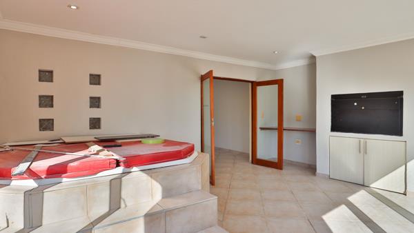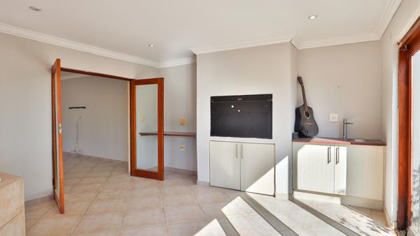 This spacious family home offers three bedrooms and two and a half bathrooms, with multiple living areas including a lounge, dining room, and a dedicated study. The kitchen is well-designed with a scullery, laundry room, and walk-in pantry. Upstairs, you''ll find an entertainment area complete with an enclosed braai and jacuzziperfect for future gatherings.