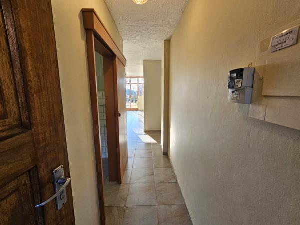 Inside, the unit offers an open-plan living & dining area that flows seamlessly onto a private balcony, creating a bright and welcoming atmosphere. The charming kitchen is equipped with ample cupboard space to meet your storage needs. Accommodation includes 3 generously sized bedrooms, each fitted with built-in cupboards. A neat bathroom is available, along with a separate toilet for added convenience. The unit is fitted with a prepaid electricity meter, allowing for flexible and controlled energy usage.