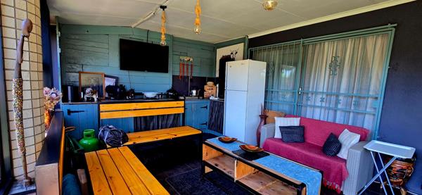 A sunroom/enclosed patio that leads to a lovely entertainment area with a built-in braai ideal for hosting friends and family