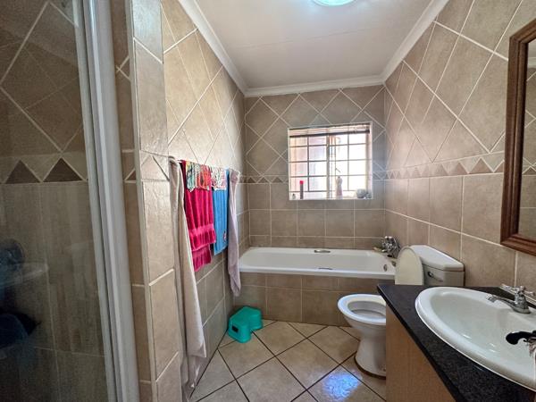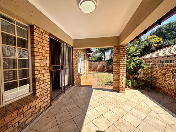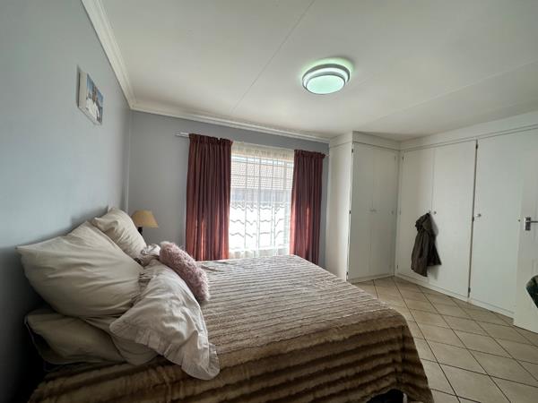 This well-maintained unit in a sought-after complex features 3 bedrooms, 2 bathrooms, an open-plan living and dining area, and a newly renovated kitchen. The property also includes a wrap-around garden, a patio with a built-in braai, a double garage, and a double carport.