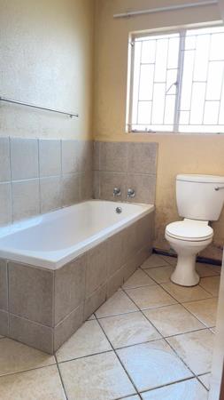 The kitchen is every home cooks dream, with a basin, built-in cupboards, and ample counter space for all your cooking needs. The double bed and en-suite bathroom with a shower add a touch of luxury to the master bedroom. The remaining two bedrooms also feature built-in cupboards and share a modern bathroom with a basin, bath, and toilet.