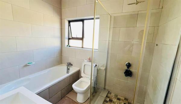 The property boasts a spacious main en-suite bedroom, complete with a full bathroom and a walk-in closet. The two additional bedrooms are equally as impressive, with built-in cupboards and enough space to fit a queen bed comfortably. The main bathroom features a basin, bath, shower, and toilet, and even has a bidet for added convenience.