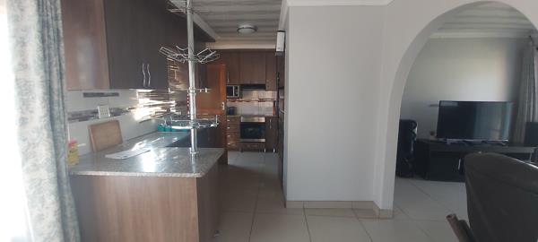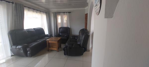 The house offer 3 bedrooms,1.5 bath, lounge, kitchen with beautiful built in cupboards, security( cameras, electric fence and access control beams) garage and carport for 3 cars.