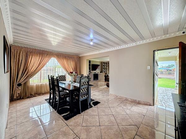 The modern kitchen is every chefs dream. Outside a beautiful large stand with a double garage, swimming pool and lapa. There is also an enclosed sun room with a seperate tiolry- ideal for entertaining in style!The double garage is automated and there is a carport for your caravan!