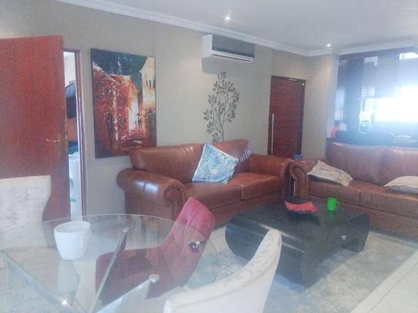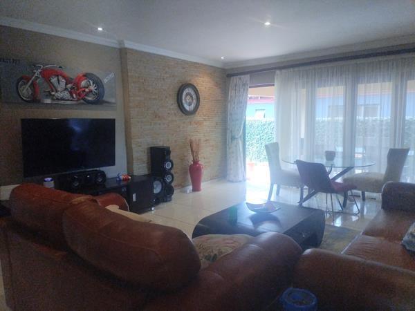 A spacious living room with a dining area. Spacious kitchen , Aircon in the living area, double garage and a Wendy house.