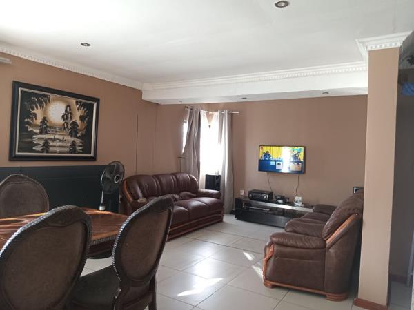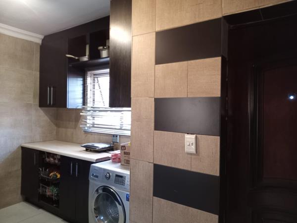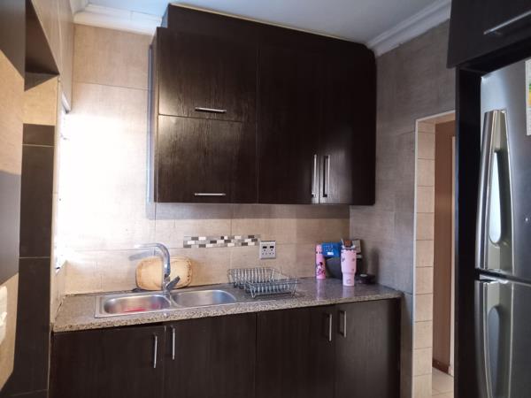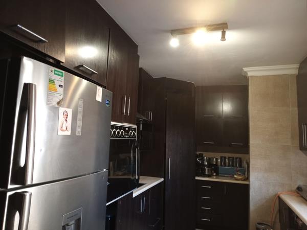 The property features four generously sized bedrooms. Both the master bedroom and an additional bedroom are en-suite, and all bedrooms are fitted with beautiful cupboards, offering ample storage space. The open-plan dining room and lounge provide plenty of space for family gatherings. The kitchen is also fitted with beautiful cupboards, offering abundant storage.