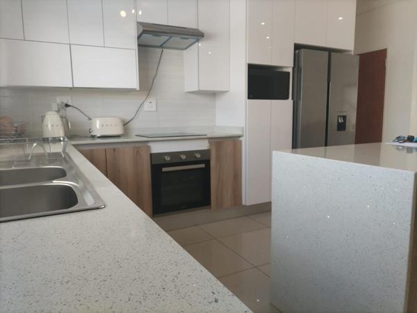 Step inside to find three spacious bedrooms and two modern bathrooms, providing ample space for relaxation and privacy. The inviting lounge is perfect for unwinding after a long day or entertaining guests. The well-appointed kitchen is designed for both functionality and style, making meal preparation a pleasure.