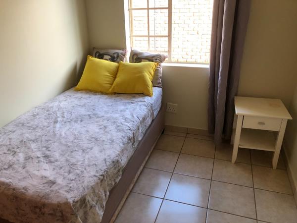 This lovely 2-bedroom apartment offers comfort and convenience in a secure complex. It features 2 well-sized bedrooms with built-in cupboards, 1 full bathroom, and a modern kitchen with ample storage space. The open-plan lounge and dining area create a warm and welcoming living space. 1 covered parking, and additional visitor parking. Ideally located close to schools, shopping centres, hospitals, and public transport route