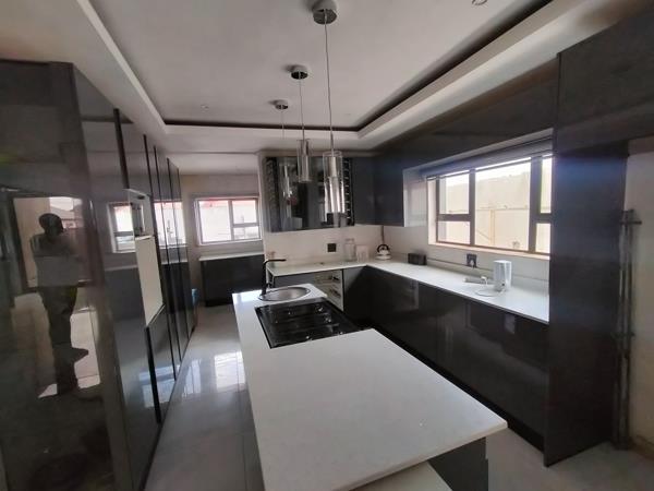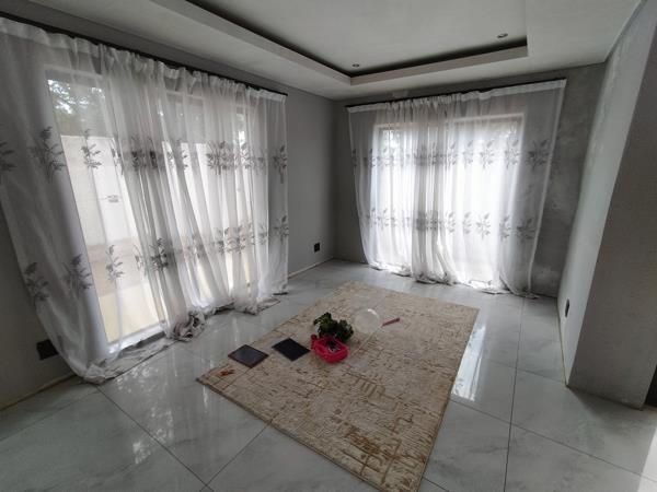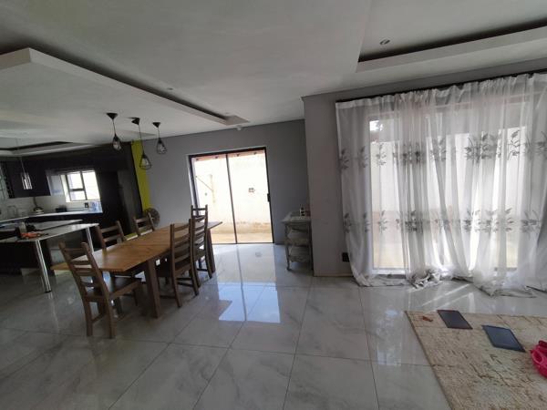 This impressive double-storey home in The Orchards is in the final stages of completion offering a modern design with spacious living areas and quality finishes throughout. The home features a sleek open-plan kitchen with a scullery, aluminium doors and windows fitted with safety glass, and large open spaces filled with natural light. The ground floor includes three living areas, a guest room, a modern full bathroom, and direct access to a double automated garage perfect for family living and entertaining.