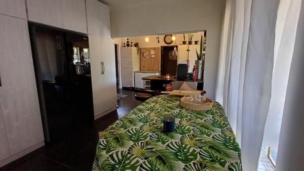 Beyond the kitchen, a charming enclosed porch leads to the barbecue area and swimming poolperfect for relaxation or entertaining. The property is fully enclosed with secure walls and gates, offering peace of mind.