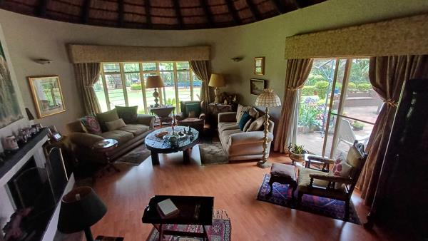 This home also includes charming features like a unique thatch roof, enhancing its character and appeal.