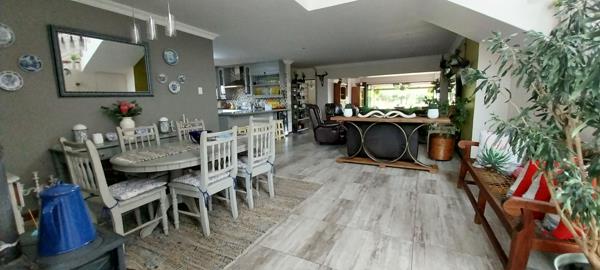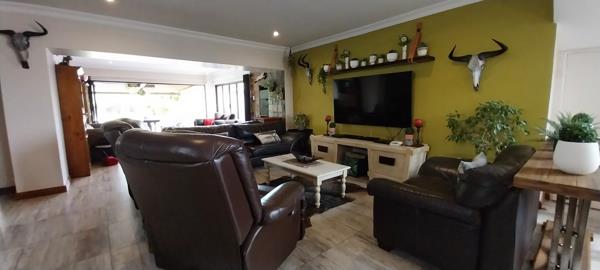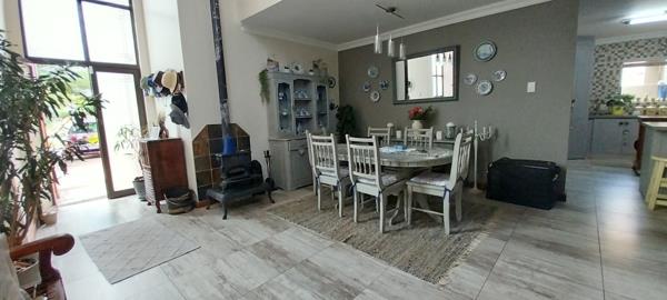 This ready to move in property has 5 Bedrooms (1 bedroom with ensuite downstairs, and 4 bedrooms upstairs), 3 Bathrooms, a modern open planned Kitchen with a scullery , Dining room, Lounge.