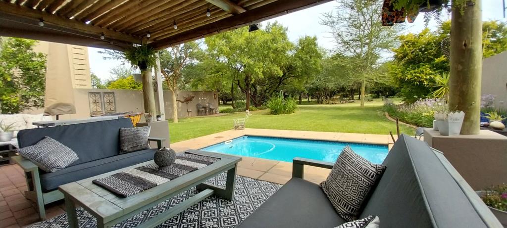 The property has an enclosed patio with build in braai that leads to a private swimming that over looks the golf course. Perfect spot for entertaining your guests