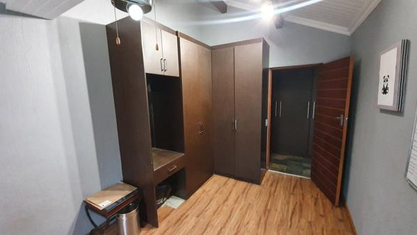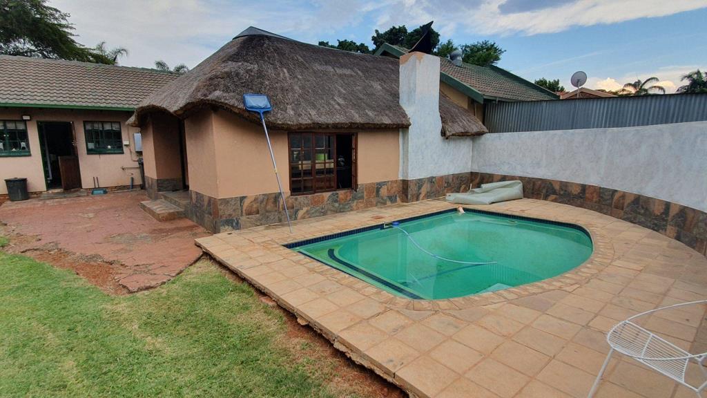 The outside offers you a welcoming Lapa with a built-in braai leading out to the green garden with a sparkling swimming pool making it ideal for entertaining friends and family while creating new memories.