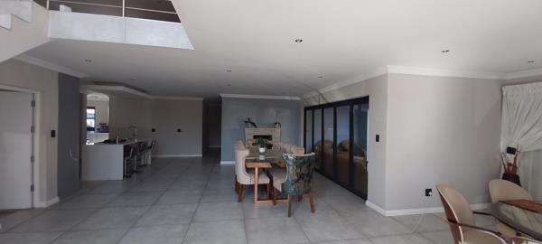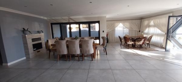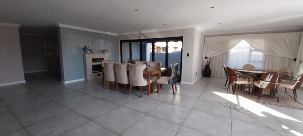 Open Plan Dining, Lounge, and TV Room: The open-plan design of the dining area, lounge, and TV room creates a seamless flow, enhanced by a cozy gas fireplace, perfect for family gatherings and entertaining guests.