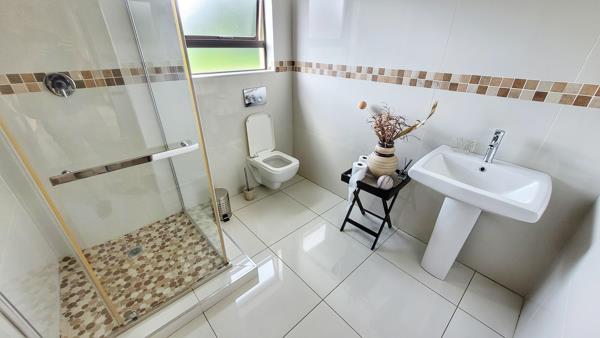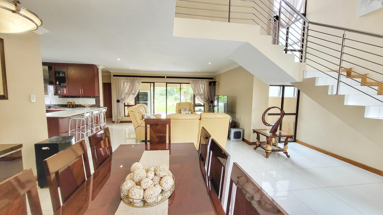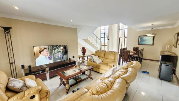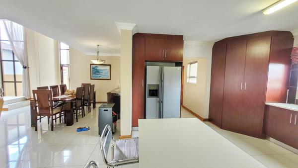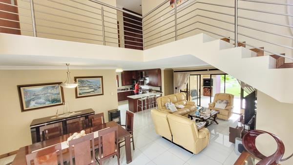 Huge open plan lounge with dining area and Kitchen with seperate scullery. One bedroom with guestbathroom down stairs. Master Bedroom with private balcony, walk-in wardrobe, full bathroom and airconditioning upstairs. Another 3 Bedrooms, one of which is oversized upstairs with a full shared batrhoom.
