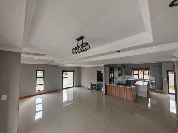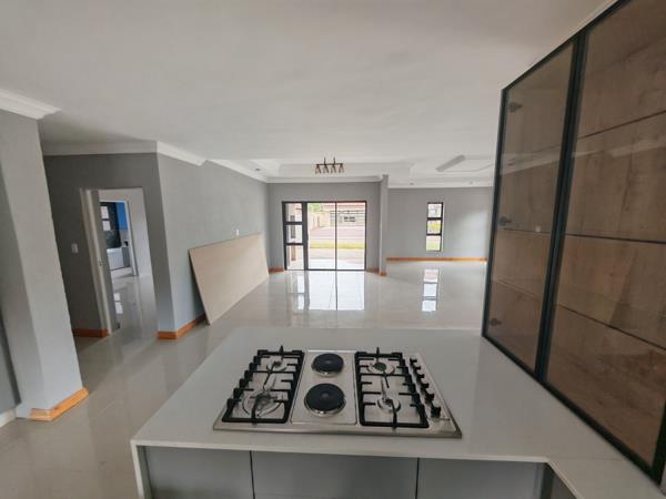The home features four spacious bedrooms, two bathrooms, and an open-plan dining and lounge area, creating a seamless flow for comfortable living. Outside, a patio awaits, complete with a built-in braai (installation required).