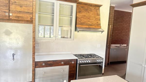.Modern Kitchen with a lot of cupboard for storage and with big Gas Stove with separate Scullery with more storage space.