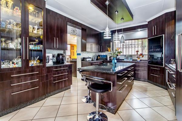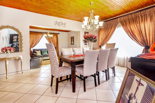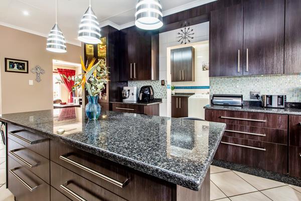 When entering the home you are welcomed with a spacious formal living room. This leads to the dining room and separate TV room. The kitchen is modern and spacious boasting with a breakfast island, gas hob and separate scullery laundry.