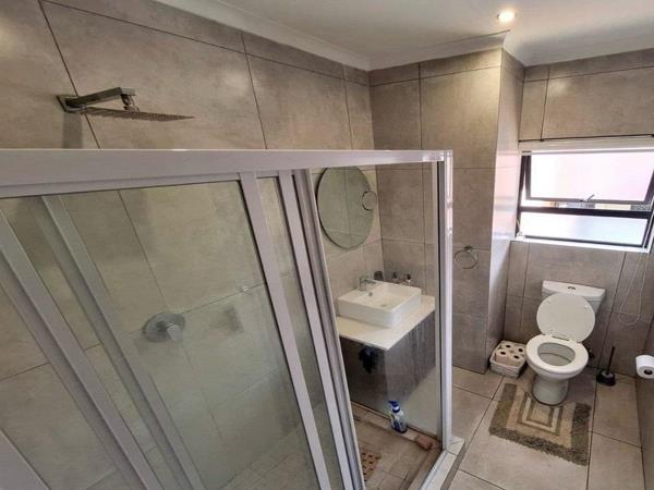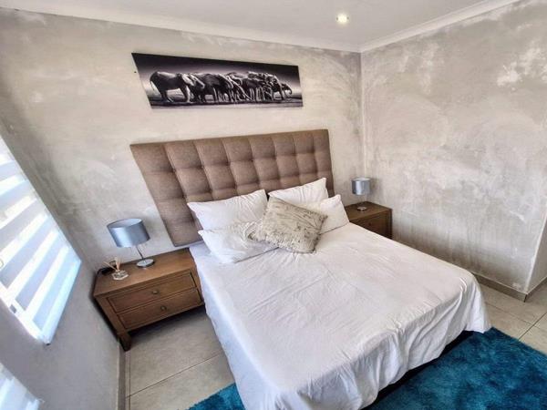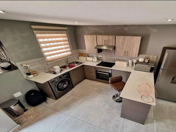This 2 Bedroom Duplex is very modern and well looked after. Upstairs you will find two well-appointed bedrooms ( main bedroom walk in closet ) and two bathrooms. Nice open plan kitchen with more than enough space. Very modern wine rack with locked glass doors for your wine collection, living area leading to a covered patio with a built-in braai, perfect for entertaining guests. Small private garden.