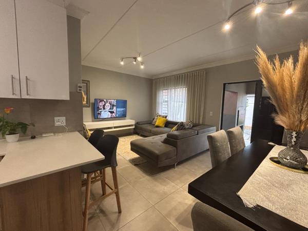 This modern townhouse is situated in Akasia, THERESAPARK. Jade Manor Estate is a full-title 24-hour security estate. It is well maintained, as it has only 20 units in a complex, which makes is more peaceful. The home offers modern comfort and luxury living. It is energy-efficient, as it has a solar geyser, battery backup, gas stove and a JoJo tank.