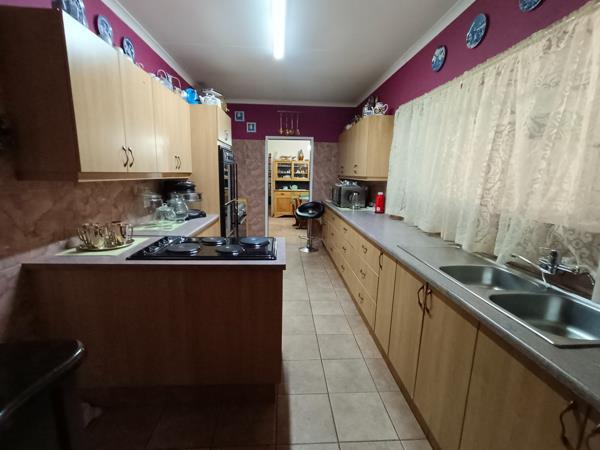 Lovely lapa with built-in braai- ideal for entertaining, double garages with automated doors, double carports for additional parking, storeroom for extra convenience, covered back stoep converted into a functional laundry area, neat garden equipped with an irrigation system.