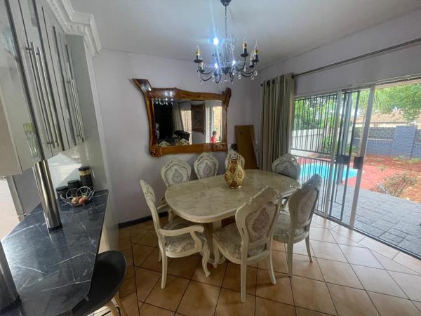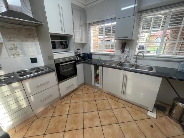 -A stylish kitchen with a breakfast nook and plenty of cupboards.