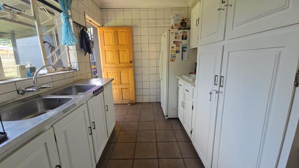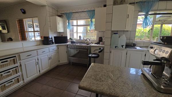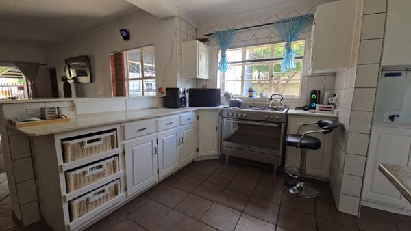Open-plan lounge and dining area seamlessly flowing into a modern kitchen. The kitchen is well-appointed with plenty of built-in cupboards, ample counter space, a gas stove, scullery, and a breakfast nookperfect for preparing meals and spending time with loved ones.