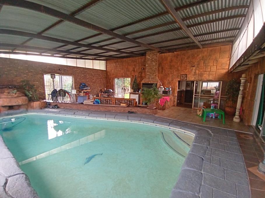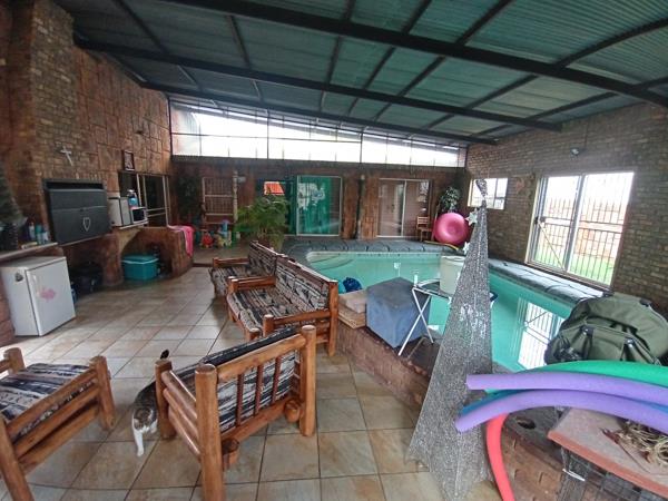 In-house swimming pool with a stunning rock-art waterfall and built-in braai, perfect for relaxation and entertaining.