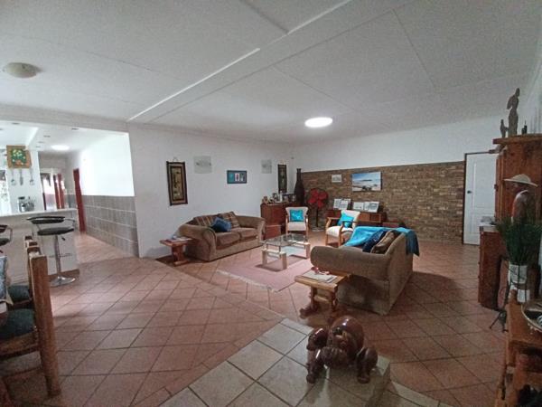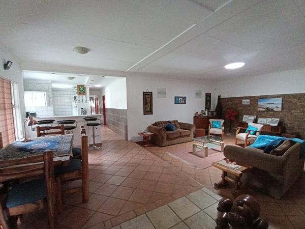 Open-plan lounge and dining area with a modern kitchen featuring a gas stove, scullery and breakfast nook.