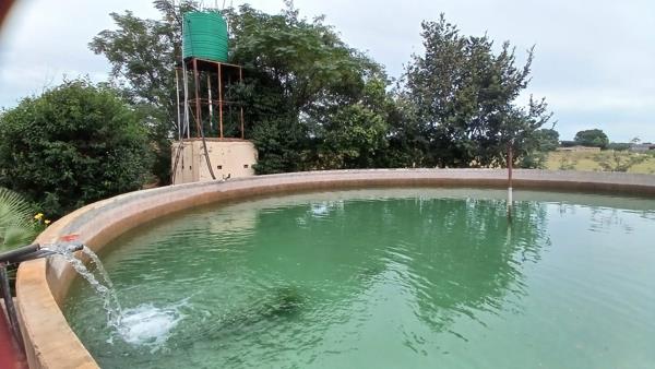 Large dam with 450,000 liters capacity, supporting irrigation and water needs