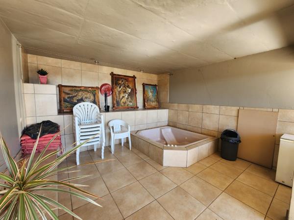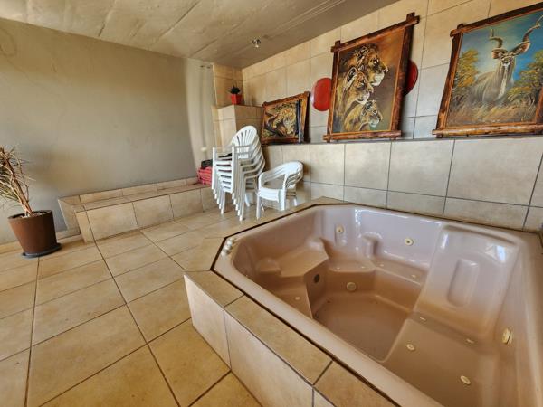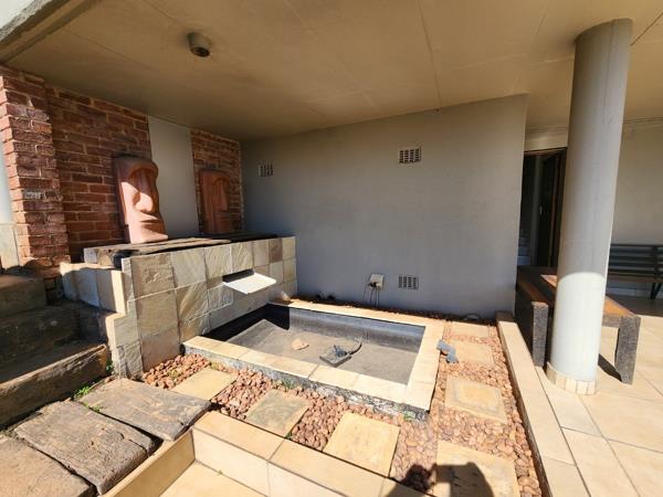The outdoor entertainment space is ideal for hosting, with a tranquil water feature, a boma, covered patio, and jacuzzicreating the perfect setting to unwind or entertain in style.