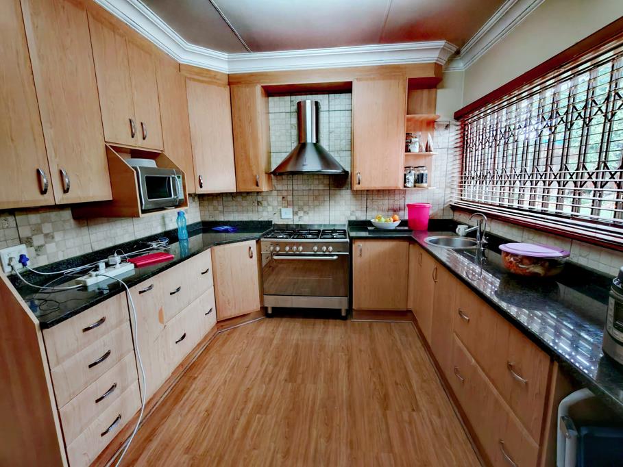 Modern Kitchen well-equipped with ample cupboard space, gas stove, and a separate scullery for added convenience.