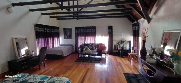 A spacious double-storey home boasting 7 bedrooms (6 with built-in wardrobes, main en-suite with balcony), 4 full bathrooms, 2 lounges (one leading onto a stoep), 2 dining areas, and a fully fitted kitchen with scullery, pantry, and fridge space. For entertainment, enjoy the lapa with jacuzzi, built-in braai, and all-weather canvas covers. The property also features a strongroom, borehole, 20kva generator, solar lights, and 3-phase Eskom power. Bring charm and character to your outdoor space with a beautiful bird cage feature for your garden.