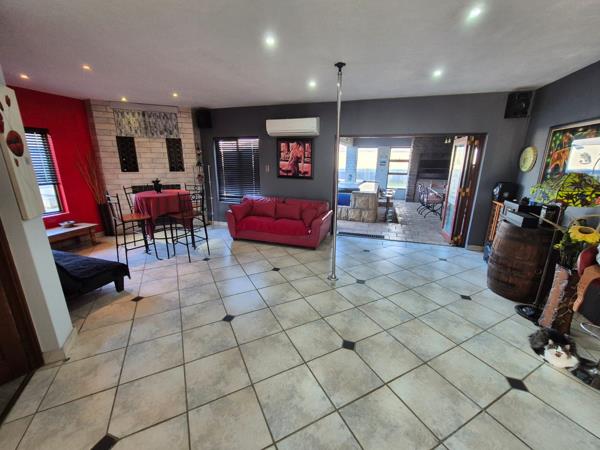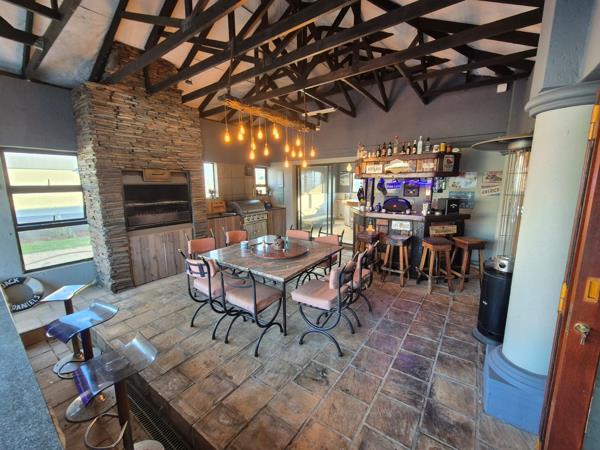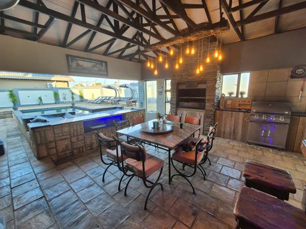 Entertainer''s dream - there is a jacuzzi room, a spacious patio with a built-in braai, a pool bar, and a sparkling swimming pool.