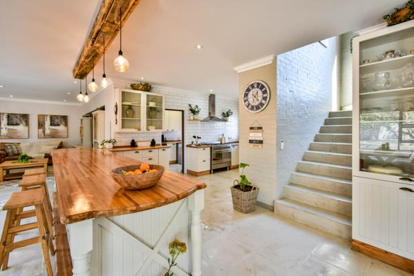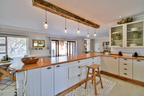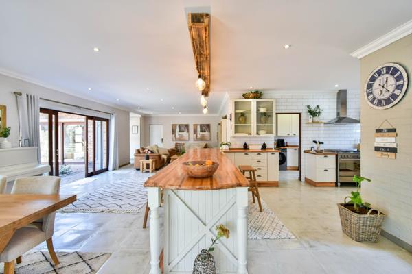 This exceptional home blends bold industrial design with luxurious finishes, offering a perfect balance of style, comfort, and functionality. The open-plan layout is enhanced by sleek screed flooring, with generous living spaces that include a stylish lounge, dining room, and a designer kitchen fitted with wooden counter tops, a SMEG gas stove, and a separate scullery.