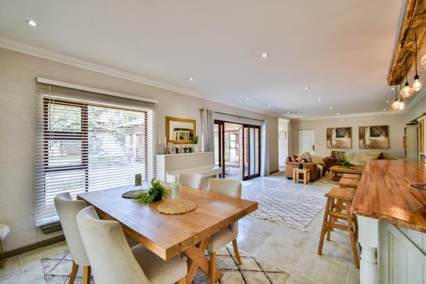 The home boasts 4 spacious bedrooms and 3 beautifully appointed bathrooms, providing ample accommodation for family living. Designed for both relaxation and entertainment, the covered patio with built-in braai flows seamlessly onto a manicured garden and sparkling pool, creating an inviting outdoor haven.