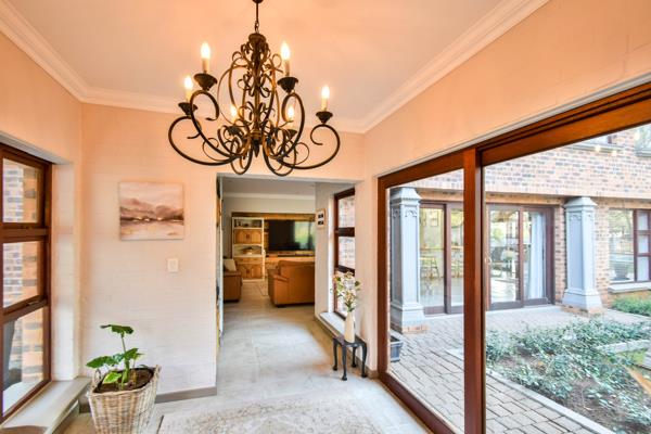 The covered patio, complete with a built-in braai opens up to a breathtaking view of the well-maintained garden and sparkling pool, creating an ideal outdoor entertainment space. With 3 garages, plenty of parking, and an outside room, this modern home is the epitome of luxury living in a highly sought after estate.