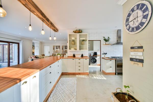 This stunning double-storey home in the prestigious Zambezi Country Estate boasts a perfect blend of modern style and luxurious living. Bordering the estates lush green belt, this property offers serene views and tranquil atmosphere. Inside, the spacious open plan living areas feature a TV room and dining room flowing seamlessly into an exceptional kitchen with wooden tops, Smeg gas oven, ample cupboards as well a separate convenient scullery.