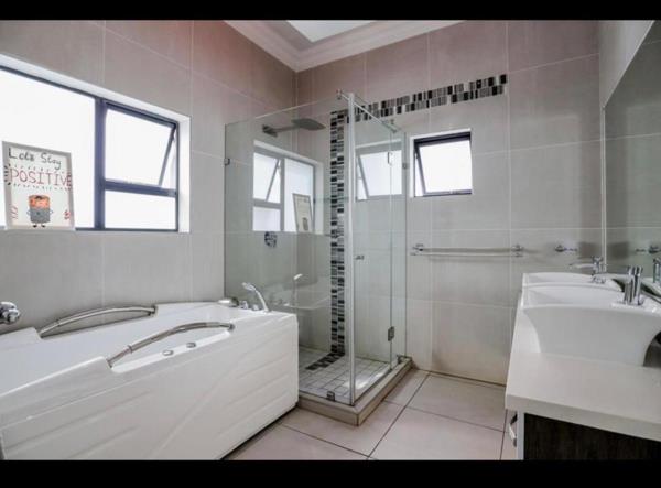 Enjoy estate living at its finest in this spacious 6-bed, 5-bath double-story home featuring open-plan living areas, a modern granite kitchen with scullery, cinema room, pajama lounge, study, air-cons, and a covered patio overlooking a landscaped garden and sparkling pool.