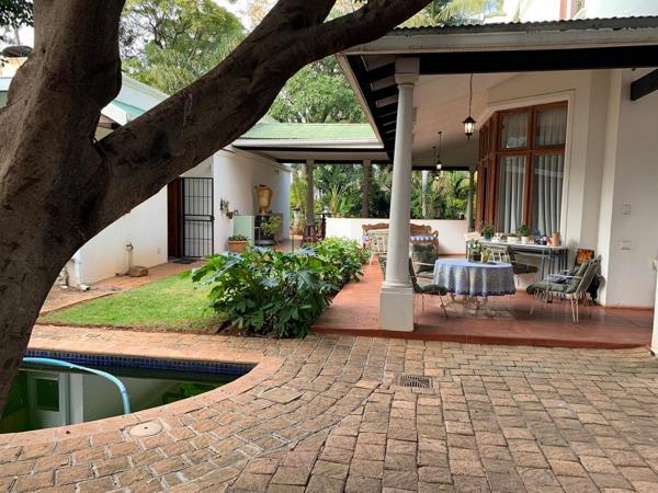 Nestled amidst lush, peaceful gardens adorned with towering trees, this homestead preserves the opulence of days long past.