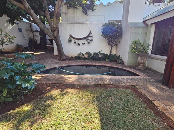 From the extra spacious entrance hall leads the super spacious formal as well as informal living areas with most beautiful original fireplaces. There is direct access from the lounge unto the farmstyle, wrap-around stoep with lovely views on the luscious gardens with enormous trees as well as easy access to the pool area and outdoor enormous entertainment hall with built-in bar and braai facilities. There is also a super spacious hobby/conference room adjacent to an outside office that is ideal for a private office wing or that can be used for an Embassy for a VISA Department. The contemporary modernized kitchen with solid wooden cabinetry and a gas stove with an undercounter oven, is very well equipped, there is a scullery as well as an outside laundry.