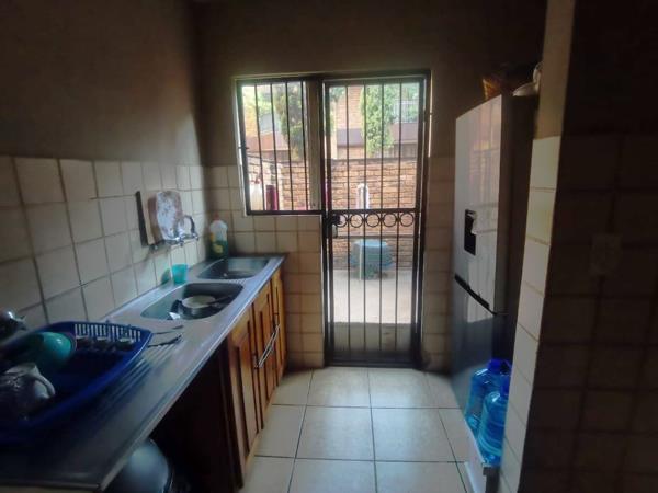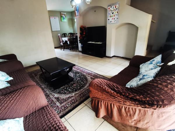 The fully fitted kitchen includes ample cupboard space and direct access to a private laundry line, while the dining area flows seamlessly into a spacious living room, creating a comfortable and functional layout. The property also offers a patio with enough space to establish a private garden, a lockable garage, and visitor parking.
